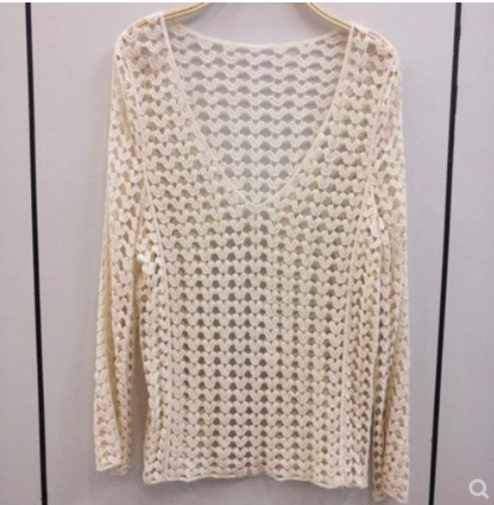 新款鏤空露肩V領防曬衫衫針織衫(杏色)(均碼)