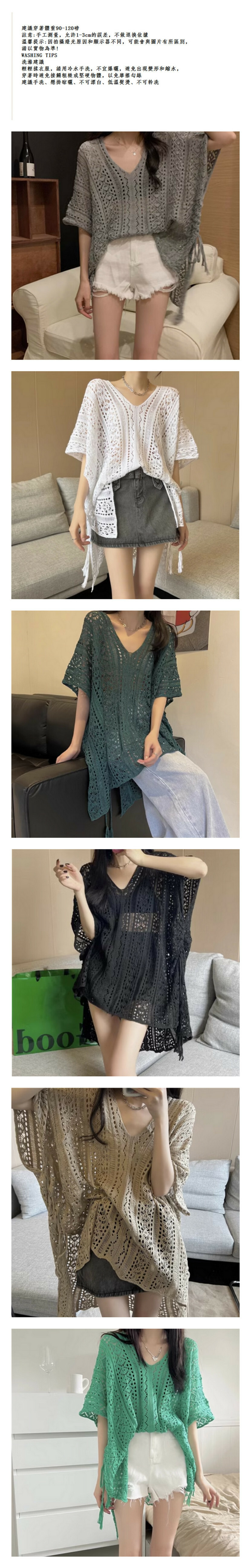 熱賣鏤空系帶上衣針織鏤空罩衫(灰色)(尺碼:均碼)#F134020241