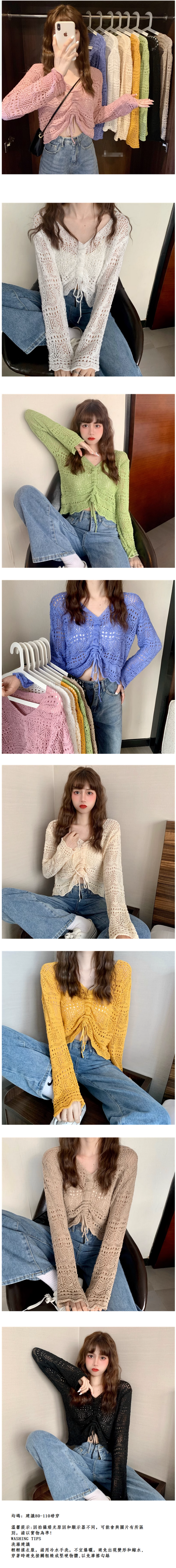 熱賣鏤空V領長袖針織衫(黑色)( 尺碼:均碼)