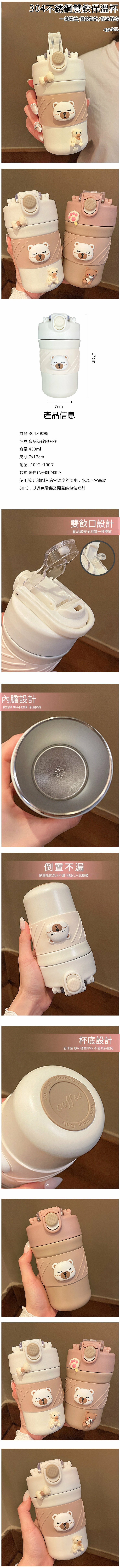 新款可愛便攜式帶吸管不鏽鋼保溫杯(450ML 米白色)