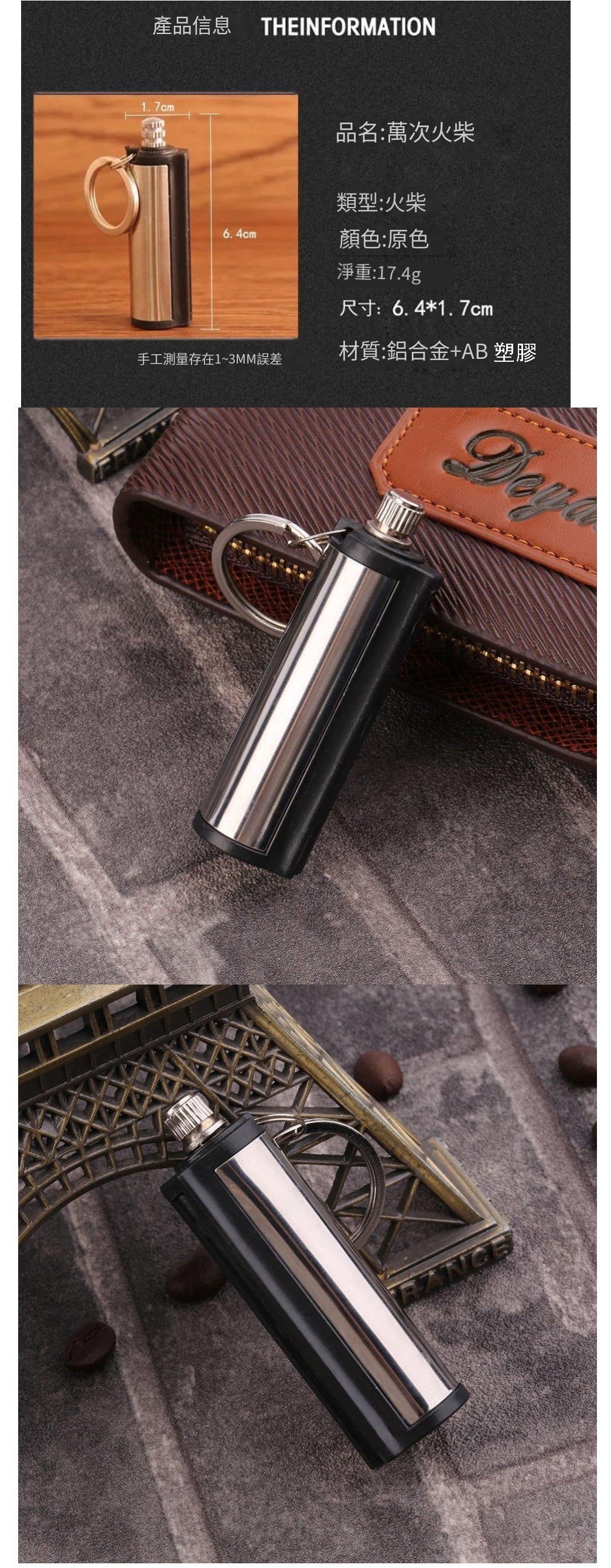 激抵圓柱形萬次火柴不銹鋼鑰匙扣萬次火柴打火機