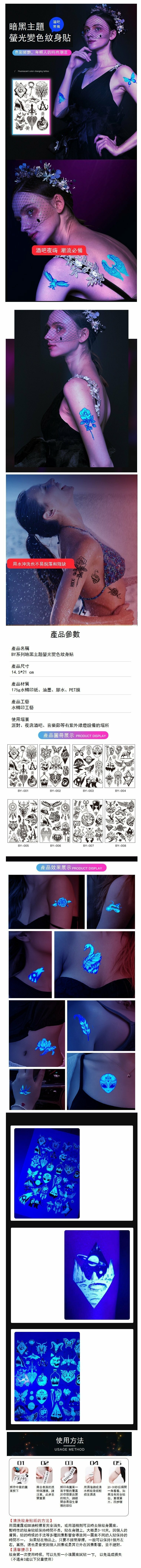 熱推暗黑係熒光變色派對Tatoo紋身貼紙(BY-005 單張 14.5*21CM)