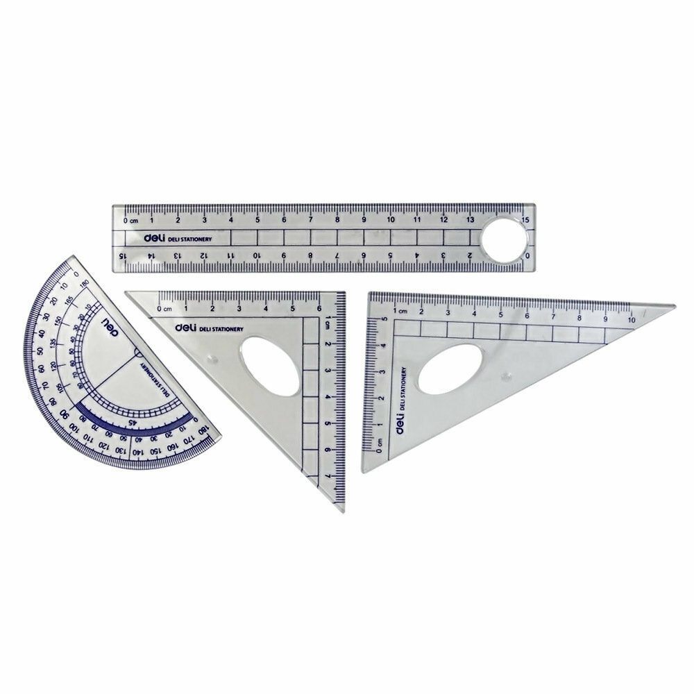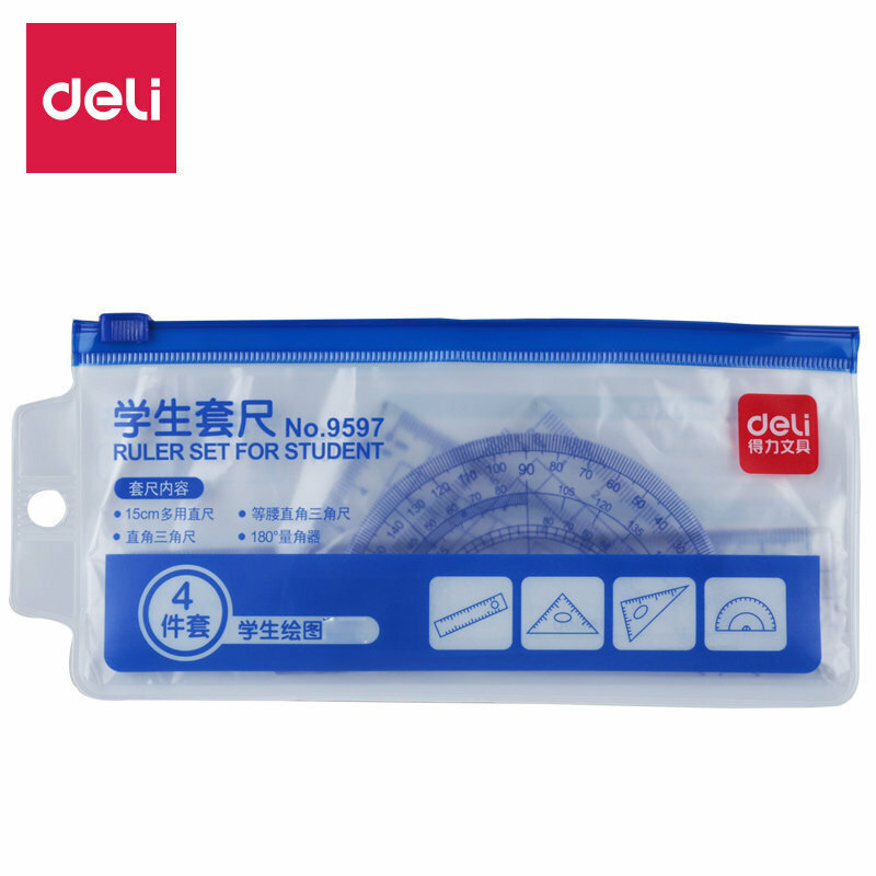 熱推得力9597角尺套裝 學生套裝 直尺+三角尺+量角器 4件套