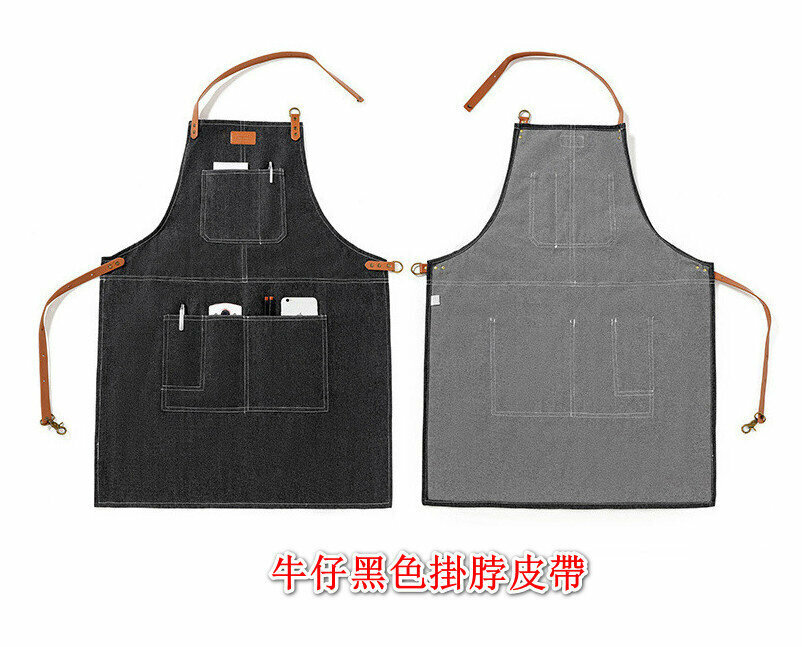 激抵牛仔圍裙 咖啡師圍裙 奶茶店圍裙 畫畫圍裙 花藝圍裙【牛仔黑色掛脖皮帶】