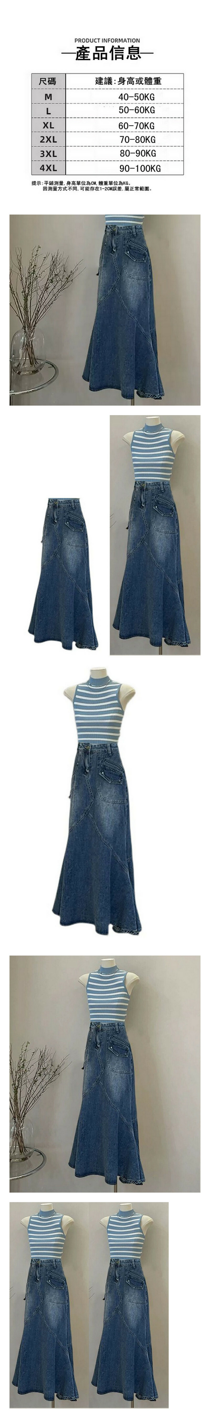 爆款牛仔半身裙#單件(藍色)(M-4XL碼) (下單後聯系客服確認尺碼)
