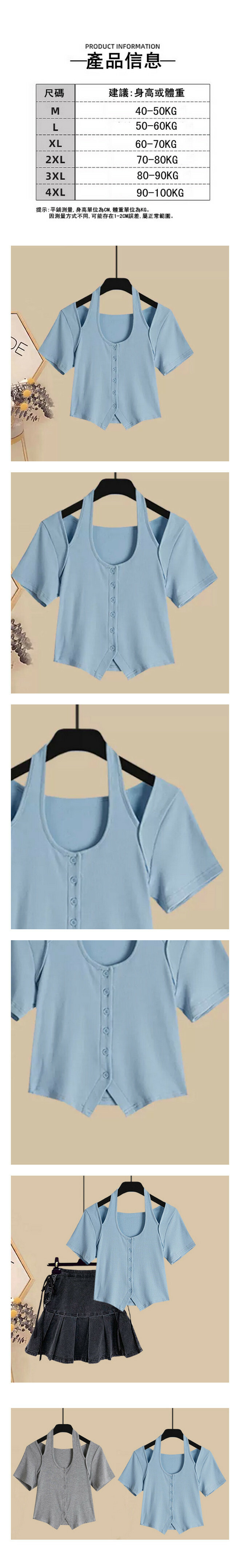 爆款設計感掛脖短袖(單件)(藍色)(M-4XL碼) (下單後聯系客服確認尺碼)
