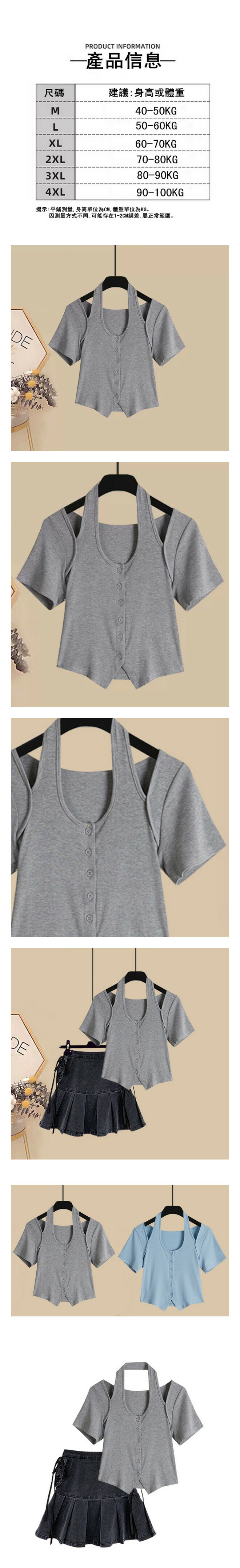 新款設計感掛脖短袖(單件)(灰色)(M-4XL碼) (下單後聯系客服確認尺碼)