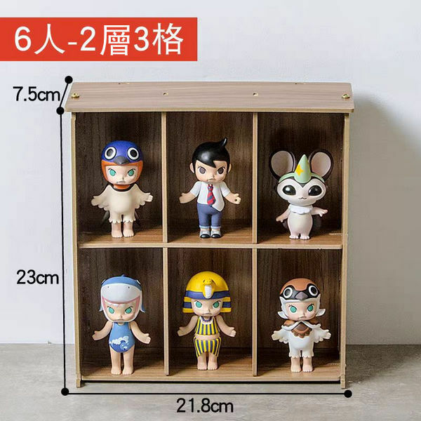 熱推桌面收納模型擺設展示架(可放6人 2層3格亞克力單開門 胡桃木色)