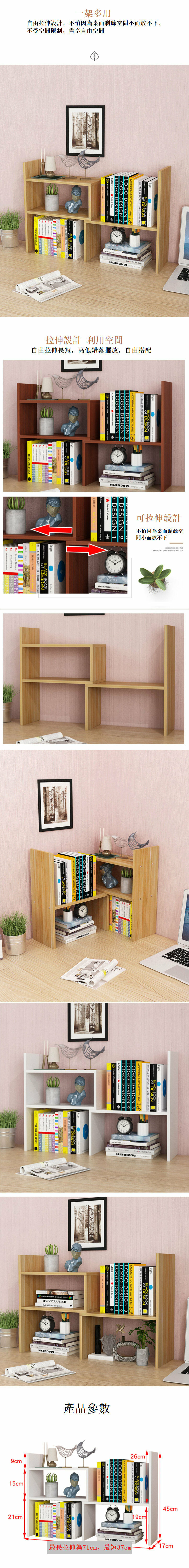 爆款桌面收納伸縮書架(白色,長72*高45*寬17)白色