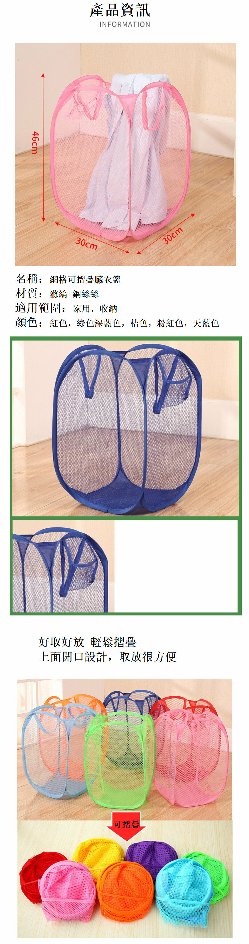 爆款污衣籃 可折疊衣物網籃收納籃 洗衫收納廁所浴室用收納籃 (顏色隨機)