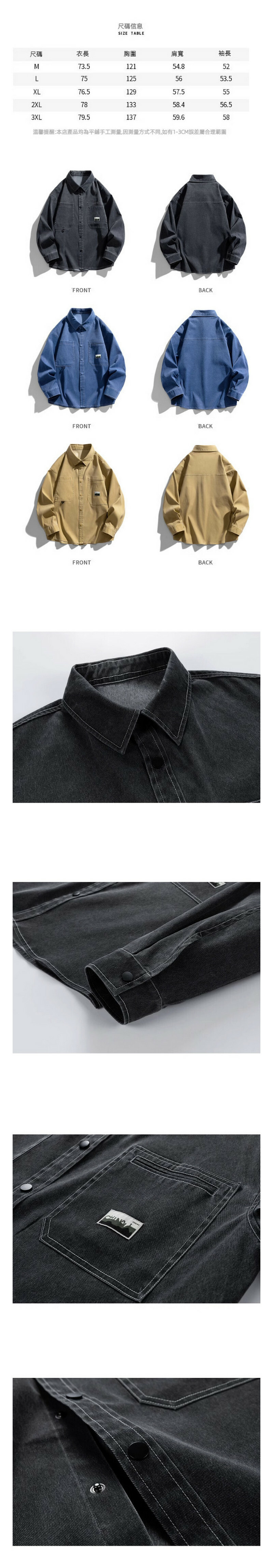 熱推做舊水洗長袖襯衫外套(石墨黑色)【M-3XL碼】【下單後聯絡客服確認發貨尺碼】