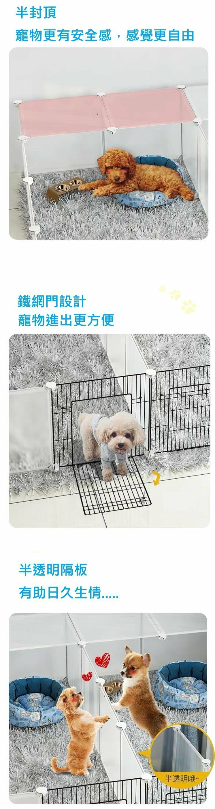 新款DIY 自由組裝寵物圍欄寵物籠(3+3格+2頂板2網門)