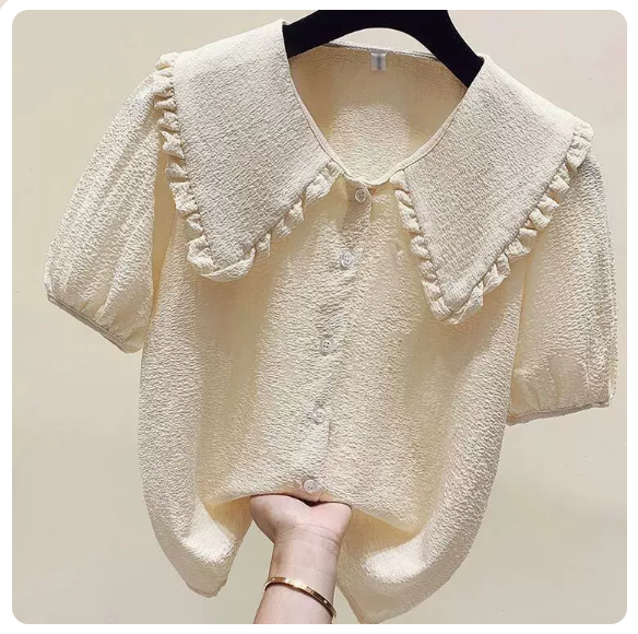 熱賣娃娃領雪紡襯衫(杏色 尺碼:S-3XL)(下單後請聯絡客服確認發貨尺碼)