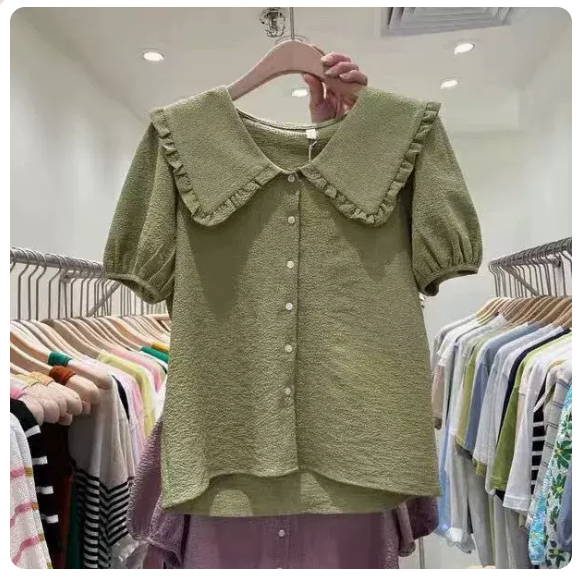 熱賣娃娃領雪紡襯衫(綠色 尺碼:S-3XL)(下單後請聯絡客服確認發貨尺碼)
