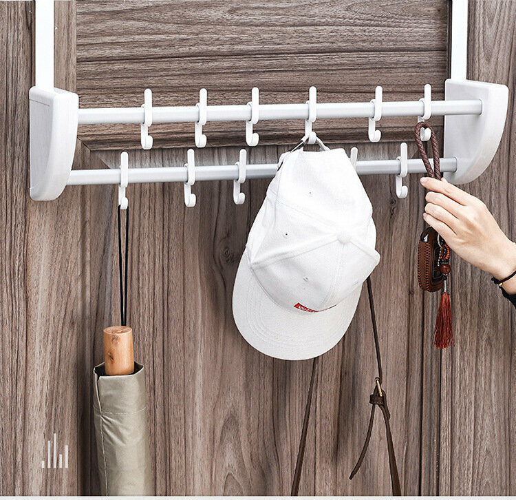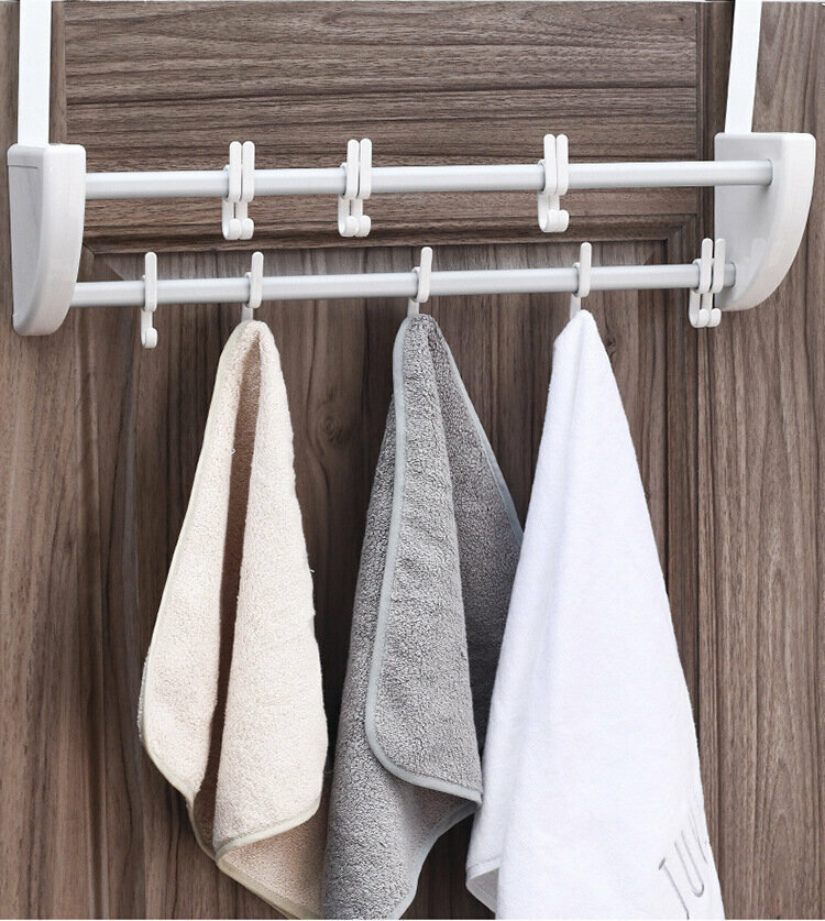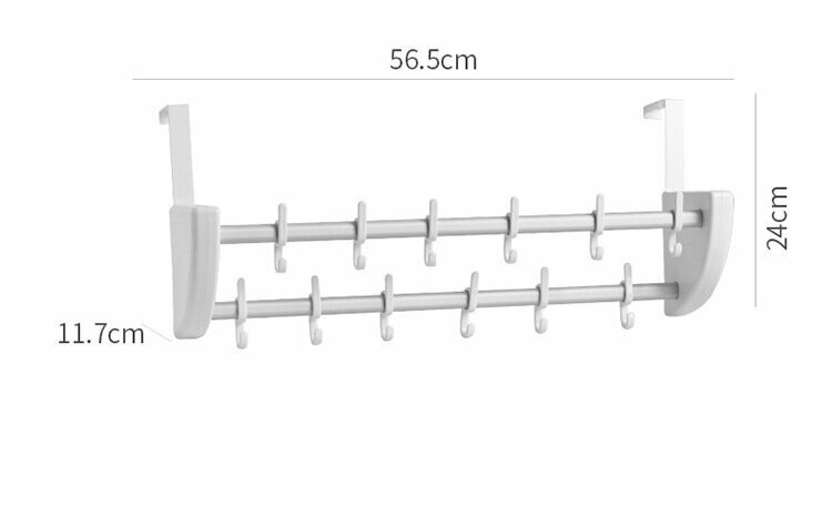 熱賣免打孔門後雙層掛架/浴室/廚房掛架(白色)(尺寸56.5cm*11.7cm*24cm)