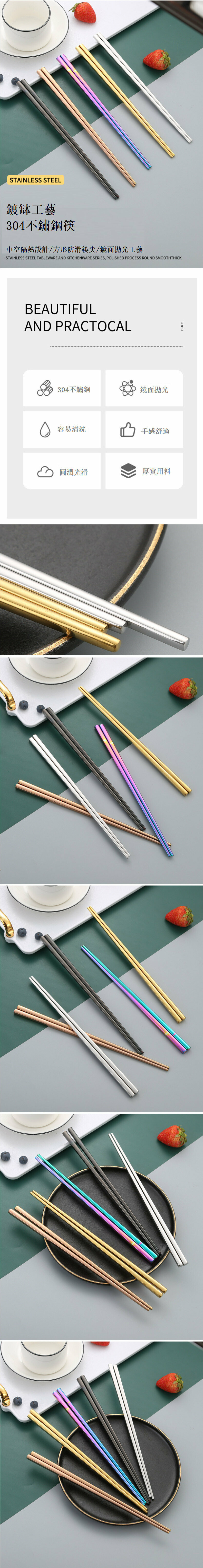 新款雙層中空不銹鋼鍍金色筷子 (23cm)
