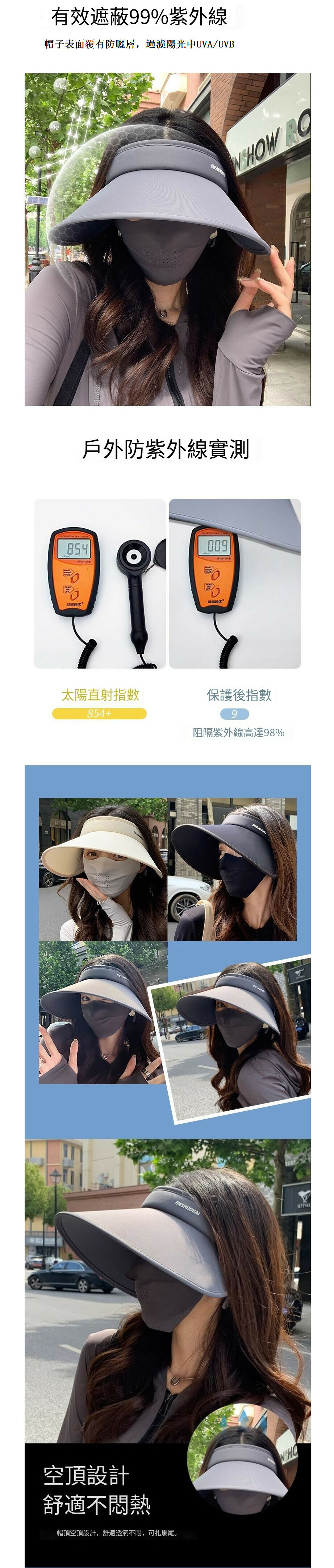 爆款雙面冰絲空頂防曬帽(L版14cm加寬加大-米色)
