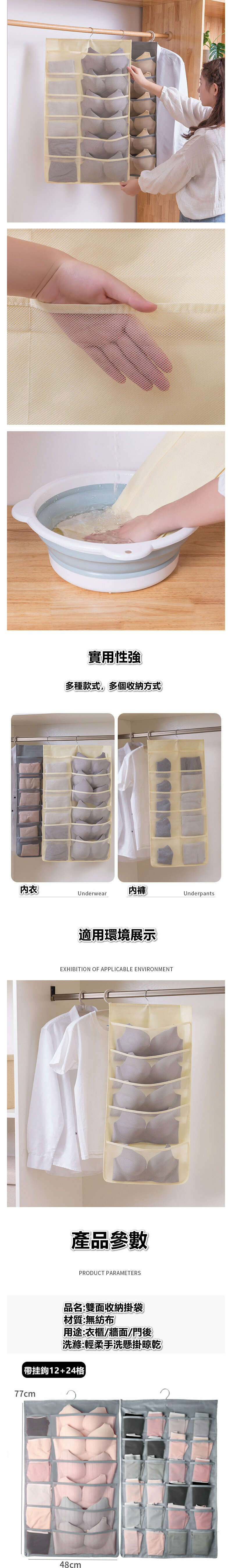 爆款雙面內衣物收納掛袋連鉤【 灰色12+24格 】
