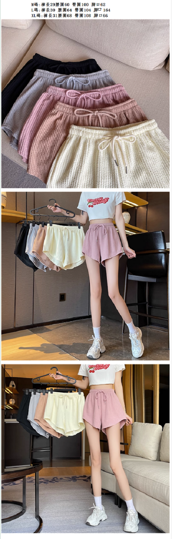 爆款抽繩闊腿短褲(灰色)(尺碼:M-XL)(下單後聯絡客服確認發貨尺碼)】
