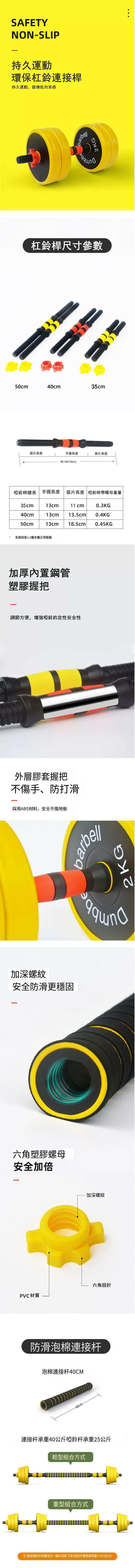 爆款啞鈴桿通用包膠螺母配件連接桿套裝(黃色)(35厘米啞鈴桿2根+4個螺母+40厘米泡沫連接器一根)
