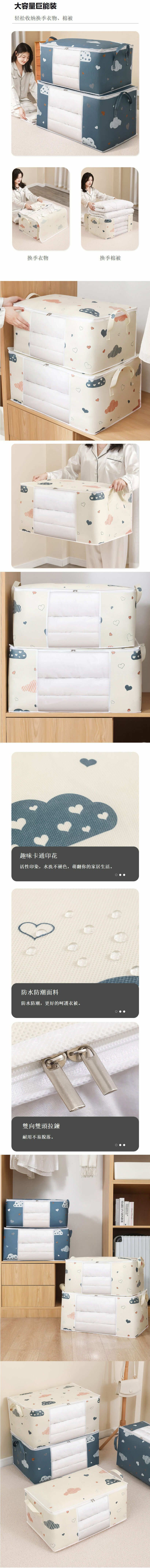 新款防塵防水防潮防霉透明視窗棉被衣物整理分類收納袋(藏青雲朵中號55*35*25cm)