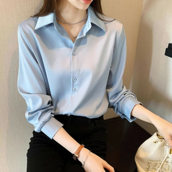 熱推早春雪紡襯衫女長袖(藍色【S_2XL碼】(下單後聯繫客服確認發貨尺碼)