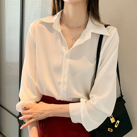 熱推早春雪紡襯衫女長袖(白色【S_2XL碼】(下單後聯繫客服確認發貨尺碼)