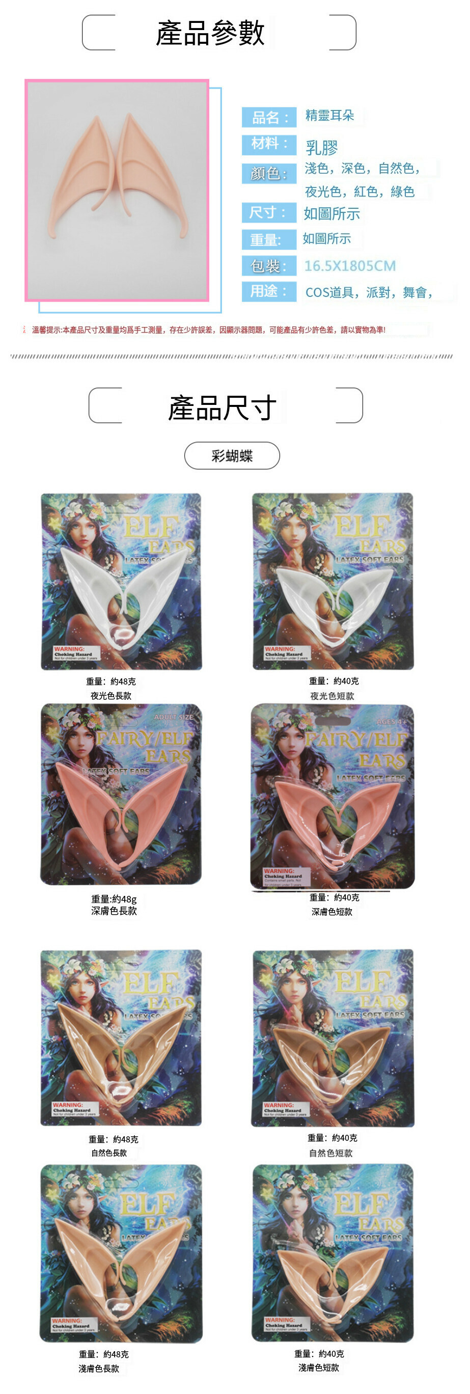 熱賣精靈耳朵乳膠假耳尖耳朵(新包裝卡紙吸塑-紅色短款)