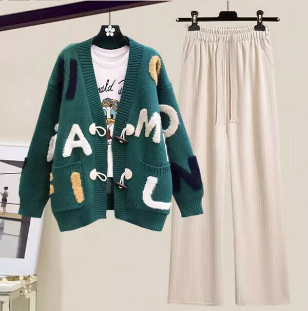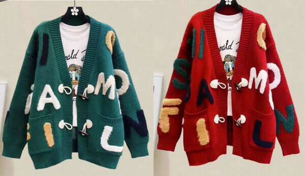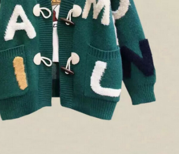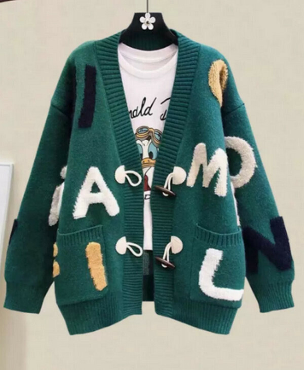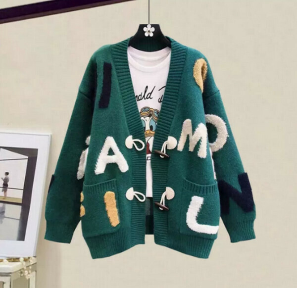 爆款英文字母毛衣外套開衫#單件(綠色)【M-4XL碼】【下單後聯系客服確認尺碼】】