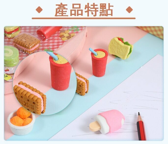 熱推擦膠-趣味造形玩具橡皮擦 Rubber (1件)(開心甜點-藍卡紙)