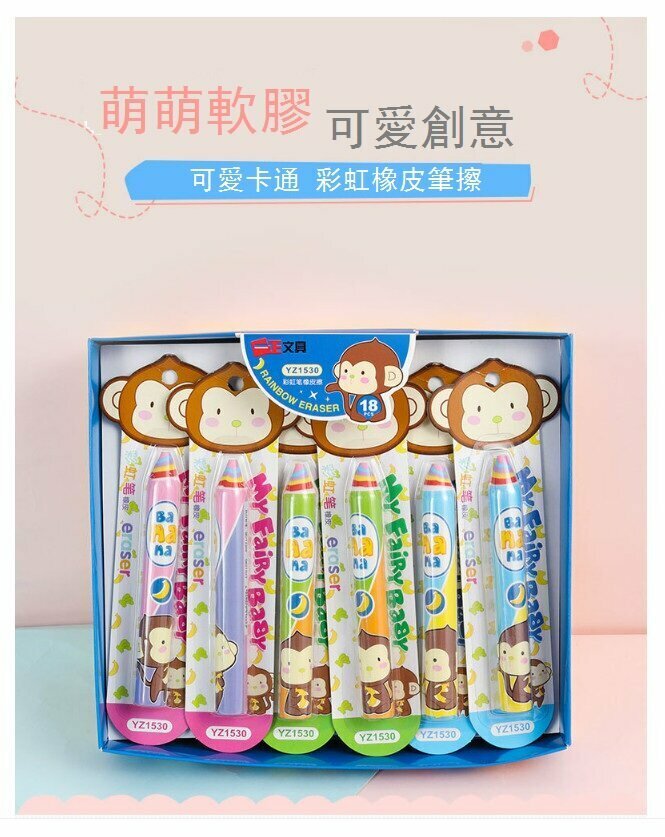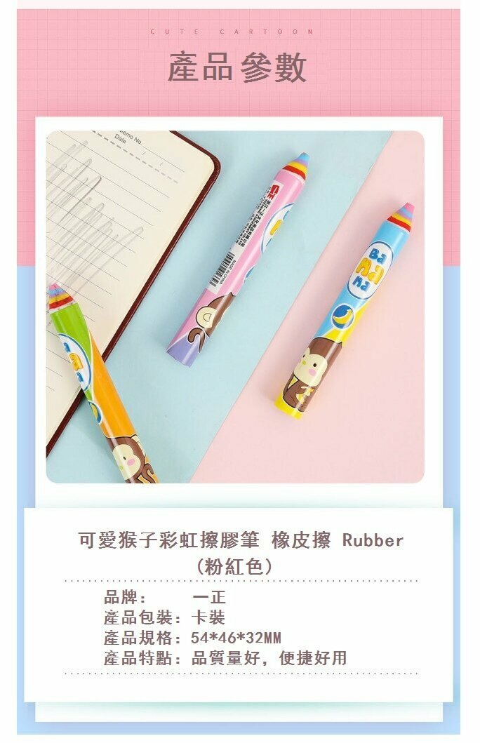 熱賣擦膠-可愛猴子彩虹擦膠筆 橡皮擦 Rubber (粉紅色) (單隻)