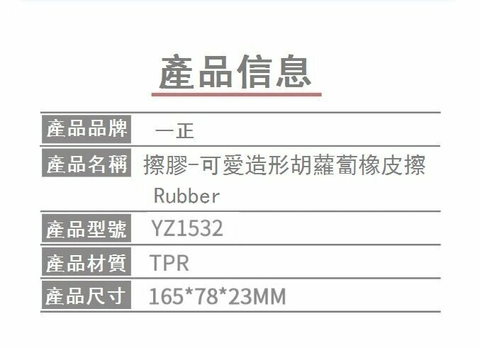 爆款擦膠-可愛造形胡蘿蔔橡皮擦 Rubber (單卡)