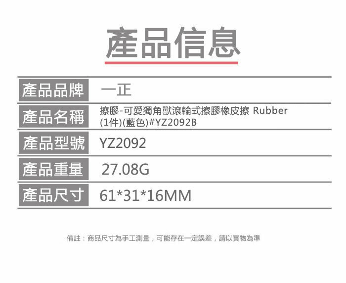 熱賣擦膠-可愛獨角獸滾輪式擦膠橡皮擦 Rubber(1件)(藍色)