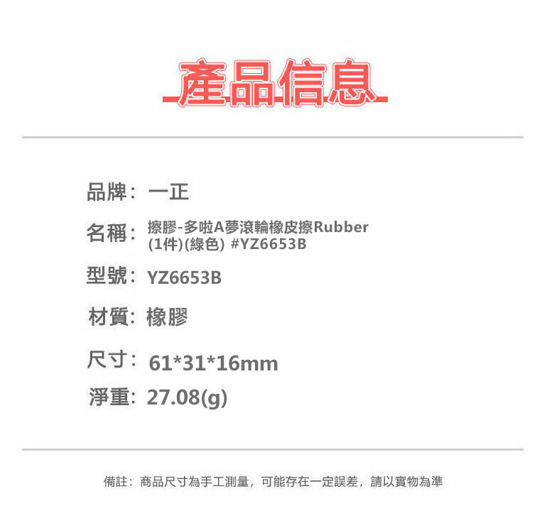 新款擦膠-多啦A夢滾輪橡皮擦Rubber(1件)(綠色)