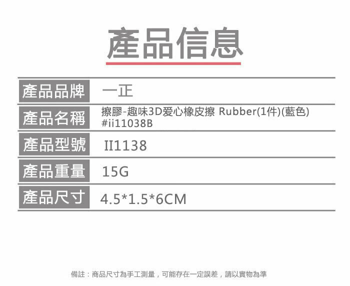 爆款擦膠-趣味3D愛心橡皮擦 Rubber(1件)(藍色)