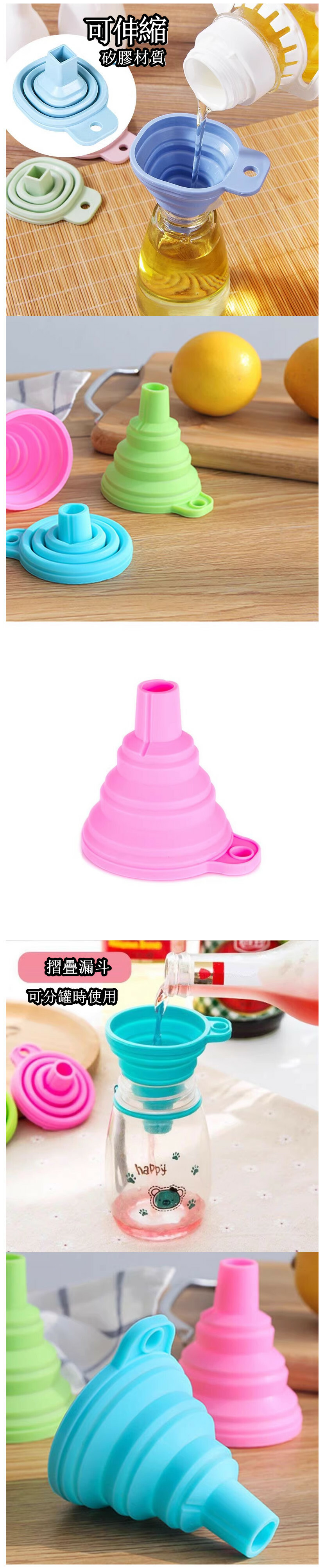 可伸縮折疊漏斗--矽膠加油倒油漏斗 分液器【3個 顏色隨機】
