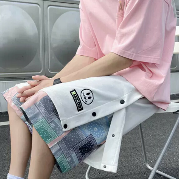 爆款假兩件排扣運動褲(白色【M_5XL碼】(下單後聯繫客服確認發貨尺碼))