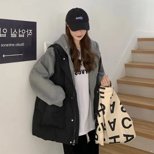 假兩件拼接棉服外套