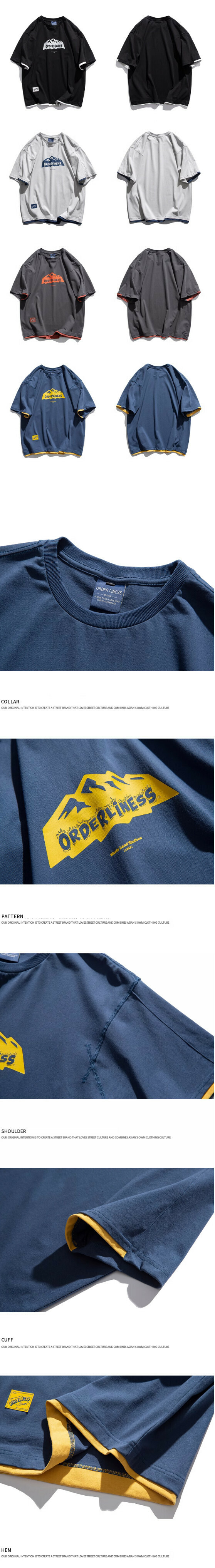 熱推假兩件印花短袖T卹(藍色)【M-2XL碼】【下單後聯絡客服確認發貨尺碼】