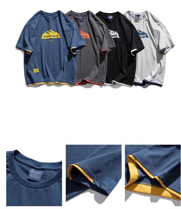 熱推假兩件印花短袖T卹(淺灰色)【M-2XL碼】【下單後聯絡客服確認發貨尺碼】