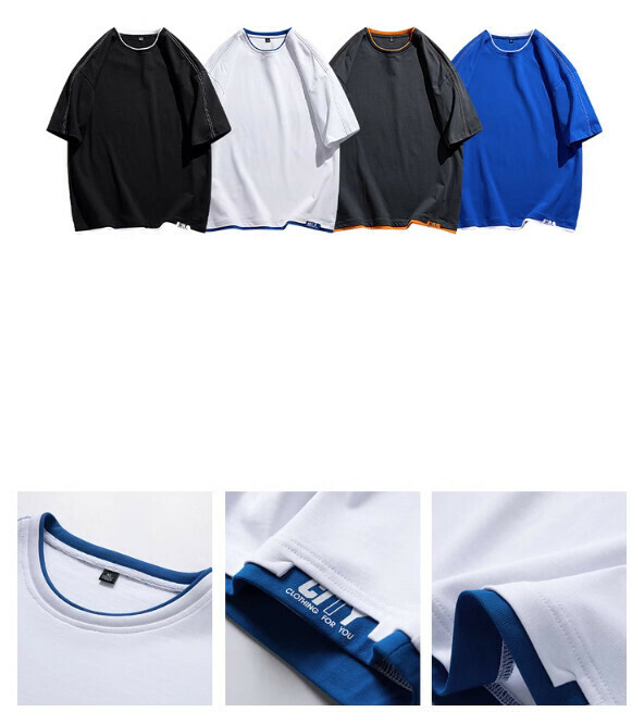 爆款假兩件拼接短袖T卹(深灰色)【M-4XL碼】【下單後聯絡客服確認發貨尺碼】