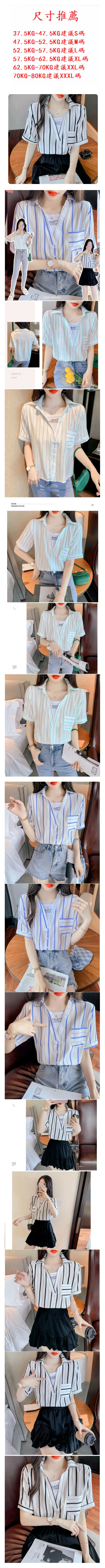 爆款假兩件短袖襯衫(黑白條紋 尺碼:S-3XL )(下單後請聯絡客服確認發貨尺碼)