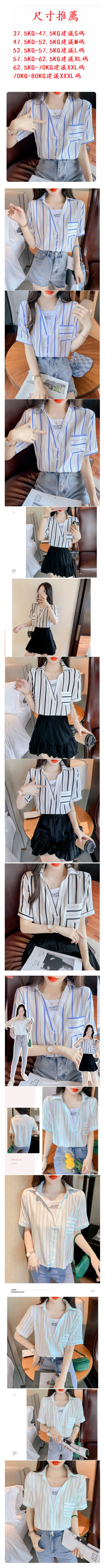 爆款假兩件短袖襯衫(藍色條紋 尺碼:S-3XL )(下單後請聯絡客服確認發貨尺碼)