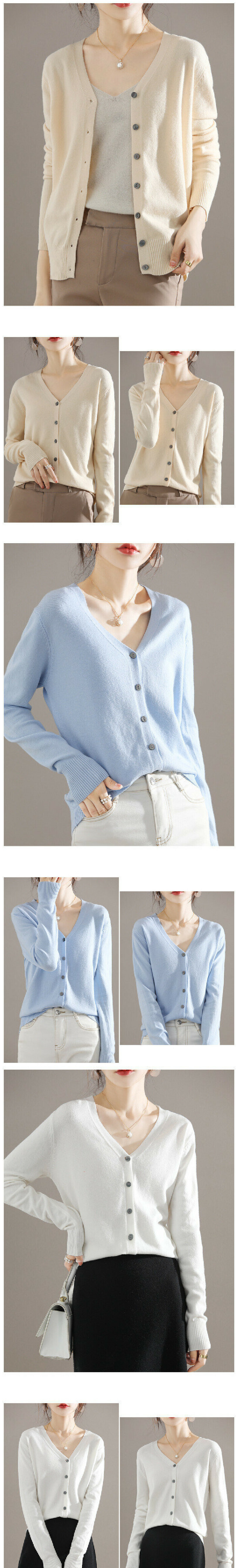 激抵秋冬薄款V領針織開衫【淺藍 XL碼】