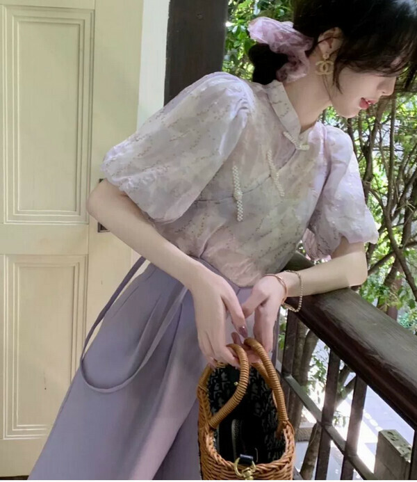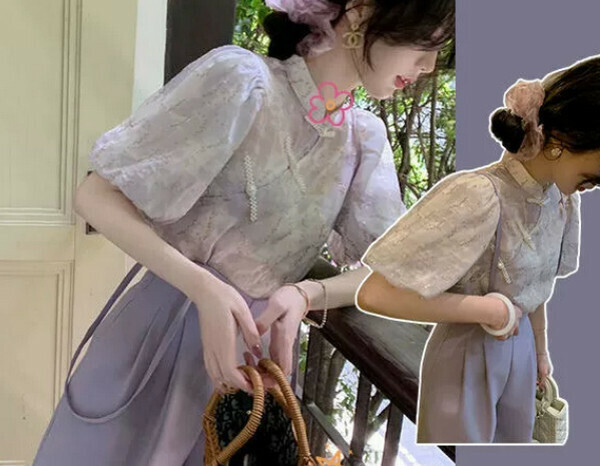 熱賣時尚氣質盤扣襯衫#單件(淺紫色)(M-4XL碼) (下單後聯系客服確認尺碼)