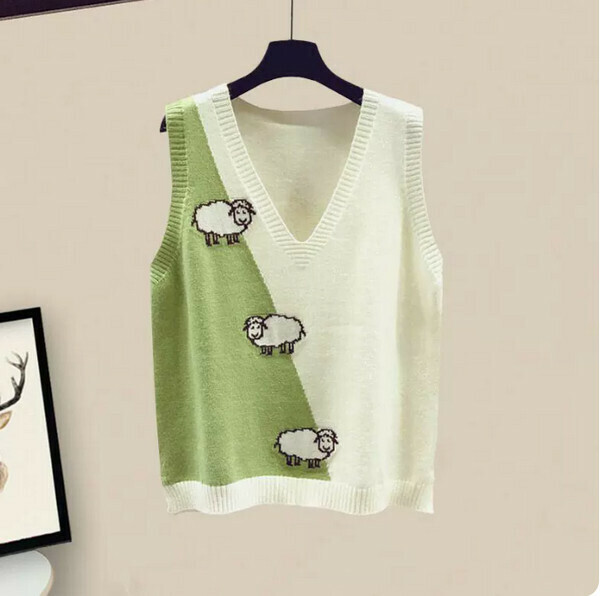 熱推胖mm顯瘦馬甲毛衣#單件(綠色)【2XL-4XL碼】【下單後聯系客服確認尺碼】