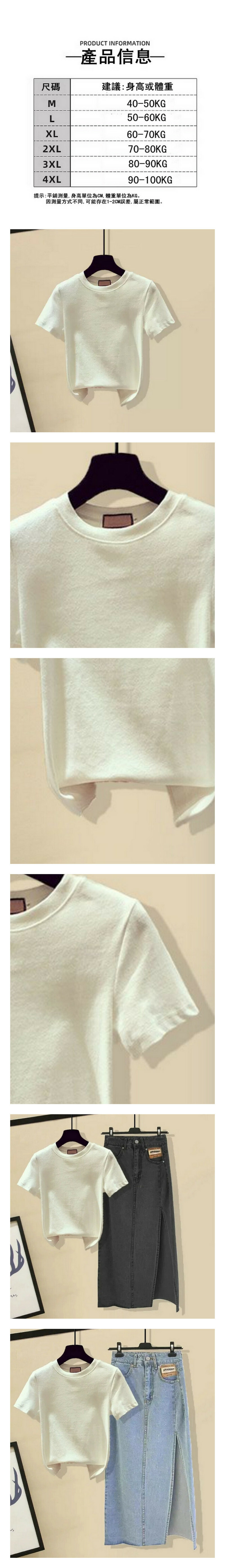 熱賣胖妹妹修身顯瘦短袖上衣#單件(白色)(M-4XL碼) (下單後聯系客服確認尺碼)