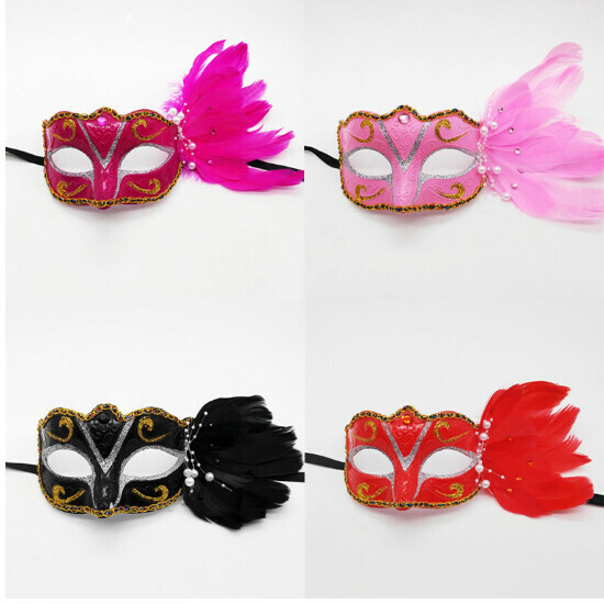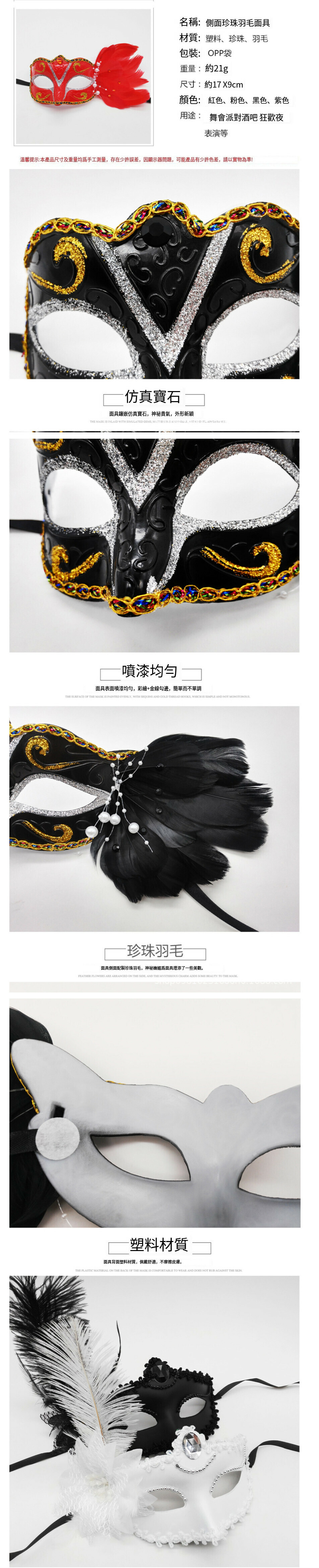 熱賣羽毛面具舞會派對表演面具(珍珠羽毛-紅色)