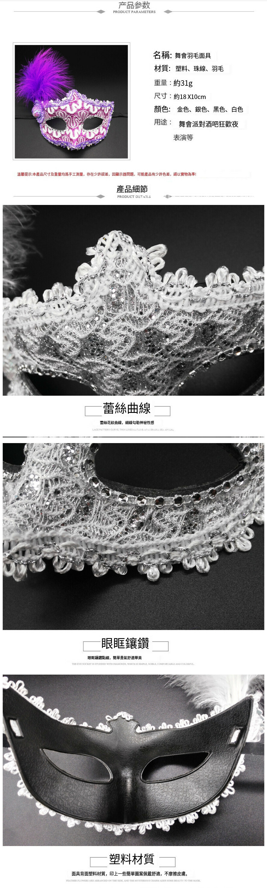 熱賣羽毛面具舞會派對表演面具(禮帽羽毛-黑色)