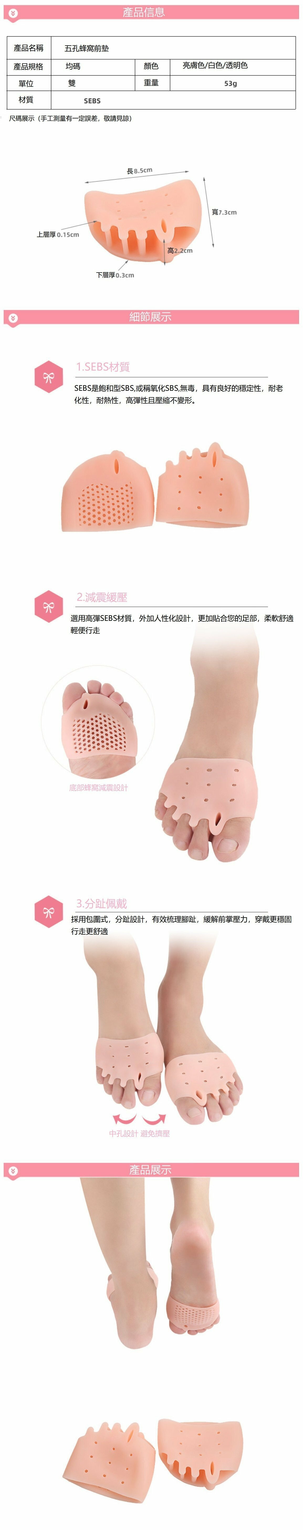 熱賣五孔蜂窩腳趾套前墊(亮膚色 均碼)